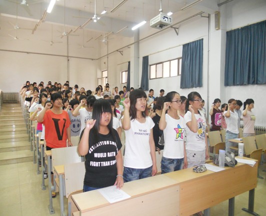 2012年5月24日中午十二点,我系获得国家奖助学金以及肖玉丽、郑和国家助学金的同学在二教110教室,进行了签订《受助承诺书》的活动。