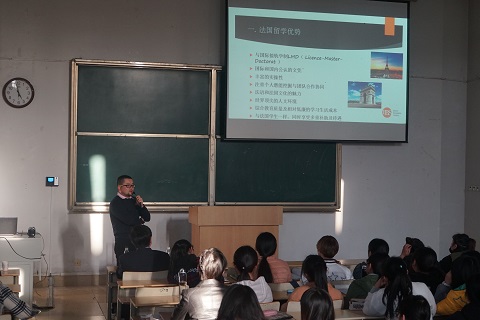 3月9日,外语系特邀请布列斯特高商中国区总监范庆于1号教学楼106教室举办宣讲会。外语系全体法语本科员工及2015级英语本科员工参加此次宣讲会。
