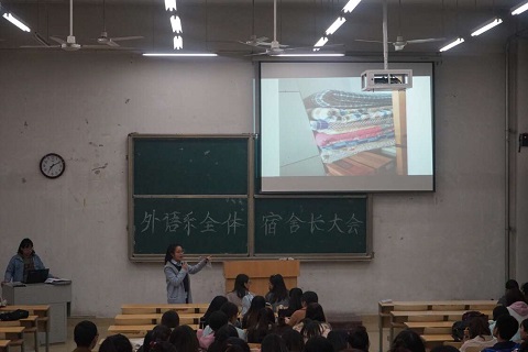 会议开始,宿管部副部长侯雅宁强调在宿舍文化建设过程中,舍长要发挥示范教育的作用。采用PPT的形式向舍长们展示了其他院系的宿舍卫生及床铺整理情况,让舍长们直观地了解到其他院系的卫生标准。随后,就各级近期宿舍情况,她提出了详细的卫生标准,并要求各级宿舍必须认真贯彻和执行。会议最后,她强调舍长一定要率先垂范,凝聚人心,共同建设文明整洁宿舍。