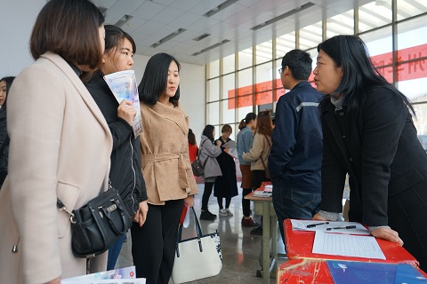 本次招聘会特邀请山东省济南、淄博、潍坊等五十余家企业来校,为2017届毕业生提供电子商务、外贸业务员、外贸销售等岗位就业机会。招聘会前,由卞老师介绍了我系的基本概况及企业简介。随后进入现场招聘环节。招聘单位通过发放宣传册、面对面交流的方式向同学们介绍公司的概况、职业发展方向以及人员需求,很多同学还在自己心仪的单位写下自己的基本信息。现场秩序井然、人头攒动,热烈的气氛还吸引了很多非毕业班的员工前来驻足聆听,提前了解了企业招聘流程及要求。