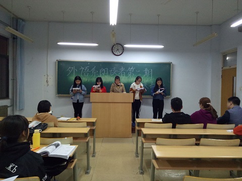 为锻炼同学们的口语发音,提高同学们学习英语的乐趣。4月10日,外语系于1号教学楼105教室举办了“Everyone is Reader”