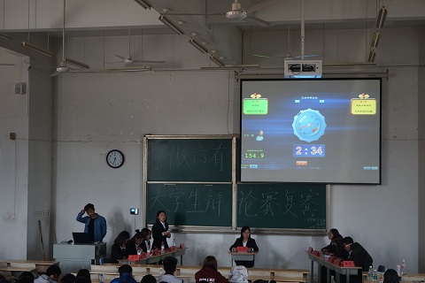 辩论赛开始,由此次辩论赛的主席宣布辩论赛规则。随后,辩论赛正式开始。由我系组成的正方与建筑工程公司组成的反方就“传统孝道是财富还是包袱”的辩题展开了激烈的辩论。双方辩手针锋相对、唇枪舌战、妙语连珠、互不相让。外语系代表气势长虹,符合逻辑的辩词令对方折服,将比赛推向高潮,现场掌声不断。最后,外语系击败建筑工程公司获得进入半决赛的资格。