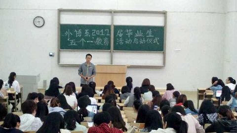 为进一步使毕业生更好地表达对母校、对老师、对同学的情感。6月6日,外语系于一号教学楼106教室举行外语系2017届毕业生“五个一”教育活动启动仪式。辅导员马盛楠,刘浩天及2013级毕业生代表参加本次启动仪式。