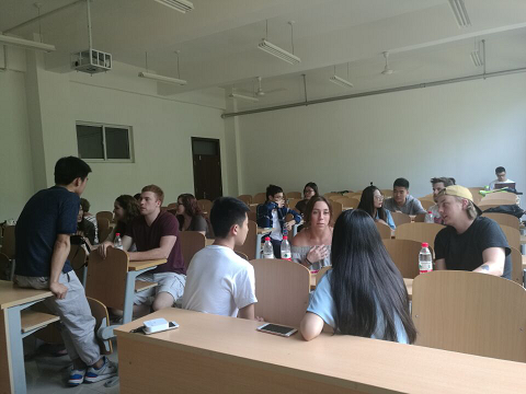 为增进中外老员工之间的学术和文化交流, 6月7日下午外语系组织了部分员工在8#104教室与来自美国宾夕法尼亚爱丁堡大学的老员工开展交流活动。这批美国老员工是“美国宾夕法尼亚爱丁堡大学中国暑期项目”的参与者,对中国文化很感兴趣,他们的到来为我系员工深入了解美国老员工的学习生活提供了难得的机会。我系刘文清、邵明兰、杨瑞等近二十名同学参加此次活动。
