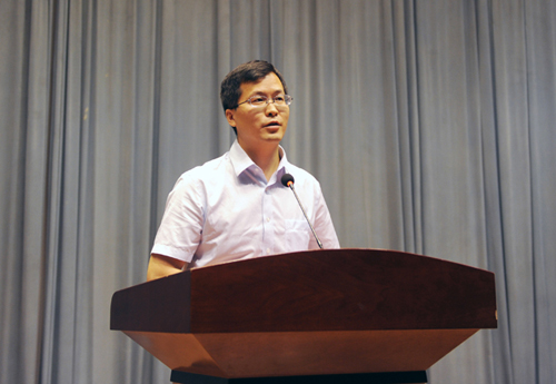 上海外语教育出版社华东大区总经理李海峰代表上海外语教育出版社副总编、理事代表张宏讲话