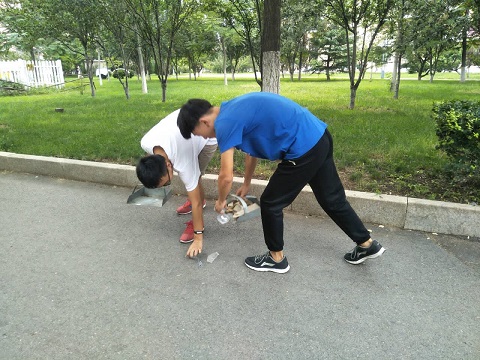 在进行简单的任务分配后,由青年志愿者协会成员组织各班代表对各宿舍楼周围草坪及附近道路进行了彻底清理。负责人周密组织,积极参与,主动融入同学们中间,同学们积极清理垃圾,美化过程有条不紊,在同学们的一番劳动下,校园呈现一派洁净的景象。