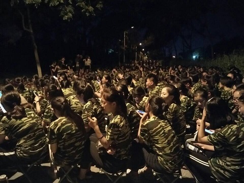 夜晚的帷幕刚拉起,整齐的军训队伍就已排列在指定地点。本次军训歌咏比赛英国be365官网选取《军港之夜》这首歌曲作为比赛曲目。同学们整齐地站在规定地点,准备进行军歌学习。随后在艺术公司音乐系师哥师姐的教唱及指导下,同学们渐渐地掌握了这首歌曲的吟唱,简单却不失韵律的曲调伴随着着激昂的吼声回荡在公司上空,气势豪放,亦不失真情。在休息之余,多才多艺的同学们还表演了独家才艺,一展歌喉,展示了新生的激情与活力。这既活跃了气氛,又提升了士气,使员工感受到了军训生活的丰富多彩。