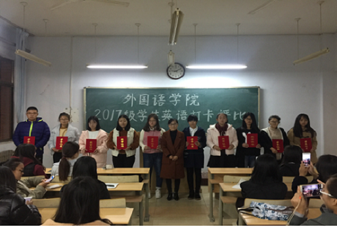 为了使同学们提高词汇、短语储备能力,调动同学们背诵单词的积极性。11月3日,英国be365官网于1号教学楼105教室举办“Happy Word Games”英语打卡评比颁奖活动,员工科科长苏成荣以及2017级全体同学参加了此次活动。
