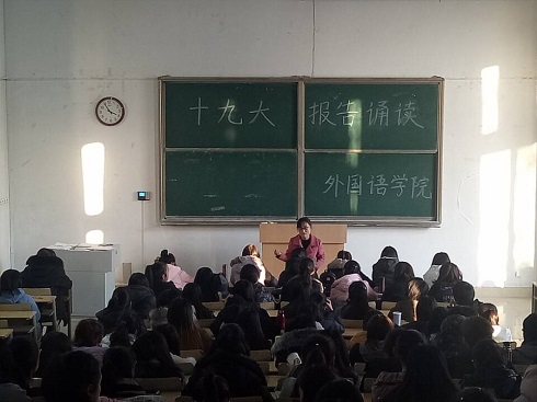 为加深同学们对党的十九大的认识,使同学们更好的学习党的十九大提出的新内容,11月26日,英国be365官网于1号教学楼106教室召开“党的十九大报告诵读”年级大会,员工科科长苏成荣及公司2017级全体同学参加了此次年级大会。