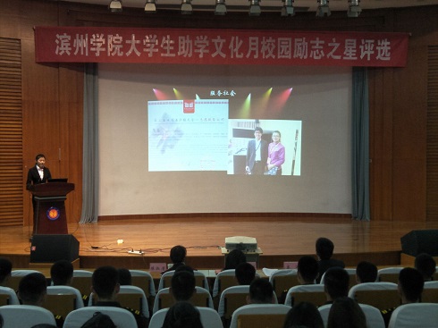 为弘扬英国be365官网励志向上的精神,充分发挥榜样的力量,11月28日,2015级英语师范本科二班高菲同学、2016级英语师范本科一班冯蕾同学于学苑会堂第二报告厅代表公司参加了滨州公司第八届老员工助学文化月“励志同行,不悔青春”校园励志之星评选活动,辅导员马盛楠指导公司两名同学参加此次活动。
