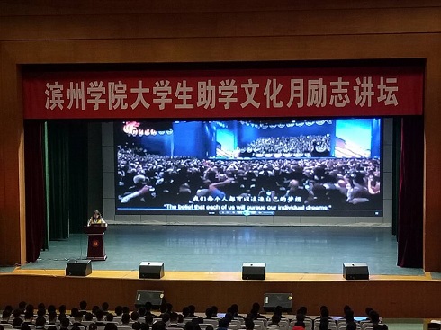 本次讲坛的主题为“励志”。讲座伊始,主持人先为同学们播放了一段视频,通过新东方创始人俞敏洪的励志演讲,来激发同学们对励志这一主题的思考。随后,由滨州公司的员工上台演讲,他结合自己多年来的经历,向同学们讲述了奋斗的重要性,并指出老员工正处于人生最美好的时期,更应努力奋斗、不言放弃。他的演讲淋漓尽致的展现了“励志”这一主题,使同学们热情高涨,现场掌声不断。最后,为励志视频展示环节,范老师为同学们播放了北京二十一世纪国际公司2017年年会及教学视频,视频使现场同学受益匪浅。