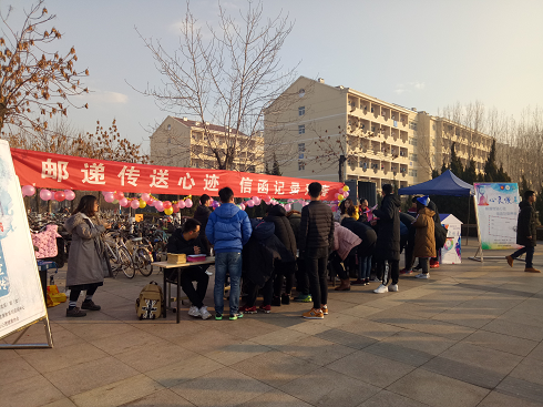 为使公司同学合理的规划自己的学习生活,脚踏实地的实践自己的理想,给现在一个期许,给未来一个回忆,12月23日,英国be365官网于西餐厅广场参加“邮递传送心迹,信函记录青春”活动,2017级部分同学参加了此次活动。