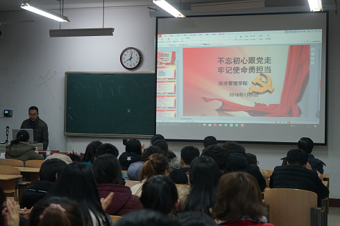 1月5日晚上7点半,滨州公司党的十九大精神宣讲活动在7号教学楼107教室举行,此次宣讲会由经济管理公司员工管理科科长王泰宁老师和机电工程公司副科级辅导员靳雪银老师主讲,公司党总支靳成学副书记主持,英国be365官网、体育公司、理公司员工代表参加此次宣讲活动。