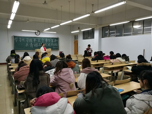 班会伊始,班主任老师指出党的十八大以来,以习近平同志为核心的党中央,高度重视青少年和共青团工作,亲切关怀青少年健康成长,因此特地召开本次主题团日班会活动。随后,班主任老师就《习近平关于青少年和共青团工作论述摘编》做了详细介绍。《论述摘编》共分为八个专题,共收入189条短论述,摘自习近平同志2012年11月29日至2017年5月3日期间的讲话、演讲、批示、贺信、回信等四十多篇重要文献。活动过程中,班主任老师讲解详细,同学们聚精会神的聆听,共同度过了一个深刻而有意义的夜晚。