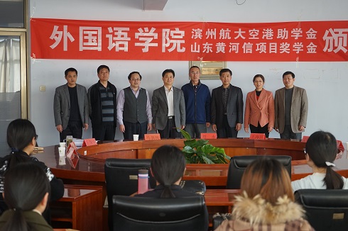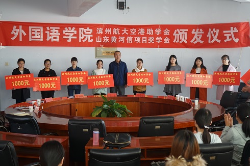 3月13日下午,“滨州航大空港助学金、山东黄河信项目奖学金”颁发仪式在英国be365官网会议室举行。滨州航大空港贸易有限公司刘永总经理,公司合作发展处王海滨处长、员工工作处马新民处长、合作发展处教育发展基金办公室李洪泉副主任出席颁发仪式。公司党政班子及员工科全体成员、获得奖助学金的40名同学参加了仪式。会议由公司党总支副书记靳成学主持。