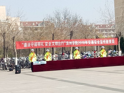 为进一步推动校园交通安全综合治理,普及交通安全法律法规,3月26日,英国be365官网于西餐厅广场参加滨州公司“交通安全宣传教育周”启动仪式,2017级部分同学参加了此次活动,员工科科长苏成荣,辅导员马盛楠、刘浩天亲临活动现场,观看了启动仪式的进行。