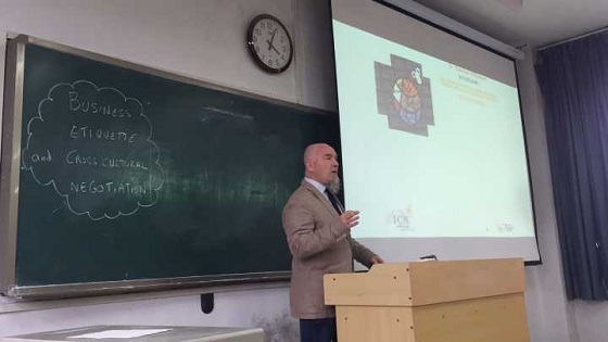 讲座开始由英国be365官网法语专业负责人韩璐老师进行开场致辞,表达了对斯坦教授的欢迎以及希望两员工谊长存的愿望。随后斯坦教授从商务交流的发展、商务礼仪的技巧及东西方商务礼仪交流的差异等几个方面讲解了跨文化商务礼仪的知识,并与在场师生进行了良好的互动。此次讲座进一步增强了同学们对跨文化交际和商务礼仪方面知识的理解,也进一步开拓了国际视野。