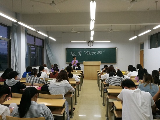 为告别低头族, 促进英国be365官网同学之间的交流, 防止手机对正常的学习、工作、生活造成恶劣影响,5月20日,英国be365官网于1号教学楼各教室召开了“远离低头族”主题班会,英国be365官网全体同学参加了此次班会,各班主任组织召开此次班会。