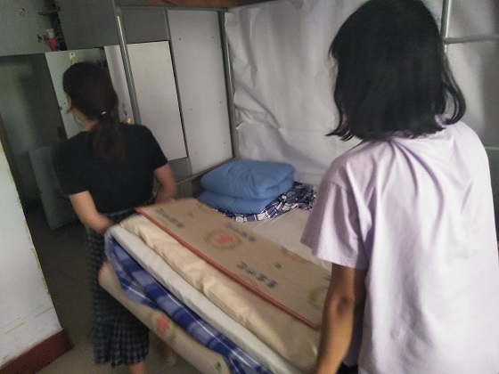 搬迁开始前,各年级分管辅导员下发通知,向同学们传达公司此次宿舍搬迁工作的必要性并提醒同学们搬迁过程中务必注意各项安全。随后,宿舍搬迁正式开始,同学们以宿舍为单位,互帮互助,一同架起被窝,一起扛起行李,谨慎的搬着贵重物品,汗水在他们的发髻间不停地渗出,湿透的T恤衫紧紧地贴在他们的后背,风干又冒出的汗水,浸润在相依相伴的这一时刻。在这个小小的家庭里时刻展现着团结互助,让友情逐步升华。