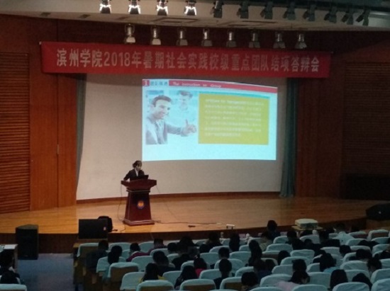 为了充分发挥社会实践在加强和改进老员工思想政治教育中的重要作用,进一步激发同学们成长成才报国的责任感和使命感,10月13日,外国语公司于公司会堂参加滨州公司2018年暑期社会实践校级重点团队结项答辩会,公司2017级李倩同学代表公司“朝阳英语志愿服务队”进行答辩。