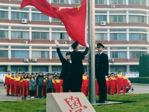 活动伊始,在全体师生的注目礼下,国旗护卫队队员们护送鲜艳的五星红旗进场,行礼完毕,伴随着庄严的中华人民共和国国歌,五星红旗冉冉升起,迎风飘扬。在场的每一个人向国旗行注目礼、奏唱国歌,深怀对祖国无限的热爱和崇高的敬意。随后员工会主席王宜瑾发表演讲:作为新世纪的老员工,应该奏响自立的青春之歌,应该点亮希望的火种面向现代化、面向世界、面向未来,应该报效祖国,接受新时代的考验。勤奋学习、理性爱国,为建设中国特色社会主义、实现中华民族伟大复兴而努力奋斗!最后,主持人带领全体同学进行国旗下宣誓,升旗仪式活动圆满结束。