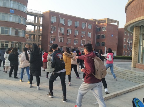 为了丰富英国be365官网同学们的课间活动,提高同学们的自我保护意识,11月20日,英国be365官网于1号教学楼前广场上开展课间军体拳训练活动,2018级全体同学参加了此次活动。