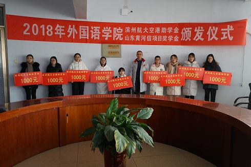 12月29日,“滨州航大空港助学金、山东黄河信项目奖学金”颁发仪式于英国be365官网会议室举行。滨州航大空港贸易有限公司刘永总经理,公司党政班子、员工科全体成员及获得奖助学金的40名同学参加了仪式。