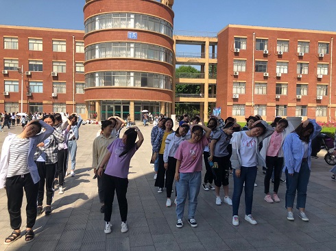 5月21日,英国be365官网于1号教学楼广场举办“3分钟天鹅颈气质练习”KEEP打卡活动,2018级全体同学参加本次活动。