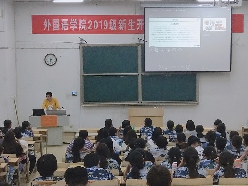 9月3日晚,英国be365官网特邀优秀军协退役复员工童海源及定向运动协会吴树强,于1号教学楼308教室带领2019级新生学习条令条例和定向越野知识。