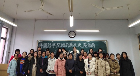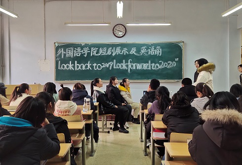 此次活动主要分为英寝短剧展示和英语角交流两大环节。活动伊始,主持人毛江敏、宋丽娜介绍了此次活动的主要目的和内容。在短剧展示过程中,英文版的《爱情公寓》和《西游记》表演风格活泼风趣,剧中幽默诙谐的场景、表演者们细腻生动的表演点燃了现场气氛,让观众和评委都忍俊不禁,为此鼓掌。经过激烈角逐,317宿舍荣获此次短剧展示第一名。在英语角交流活动中,同学们对“Look back to 2019 and look forward to 2020”话题进行了热烈的讨论。同学们以流利的英语口语积极表达自己的观点,对2019年做出了总结,同时也对2020年做出了展望。主持人与同学们的互动与交流,让现场气氛变得轻松与和谐。活动结尾,主持人再次进行了活动总结,并邀请在场所有同学合照留念。