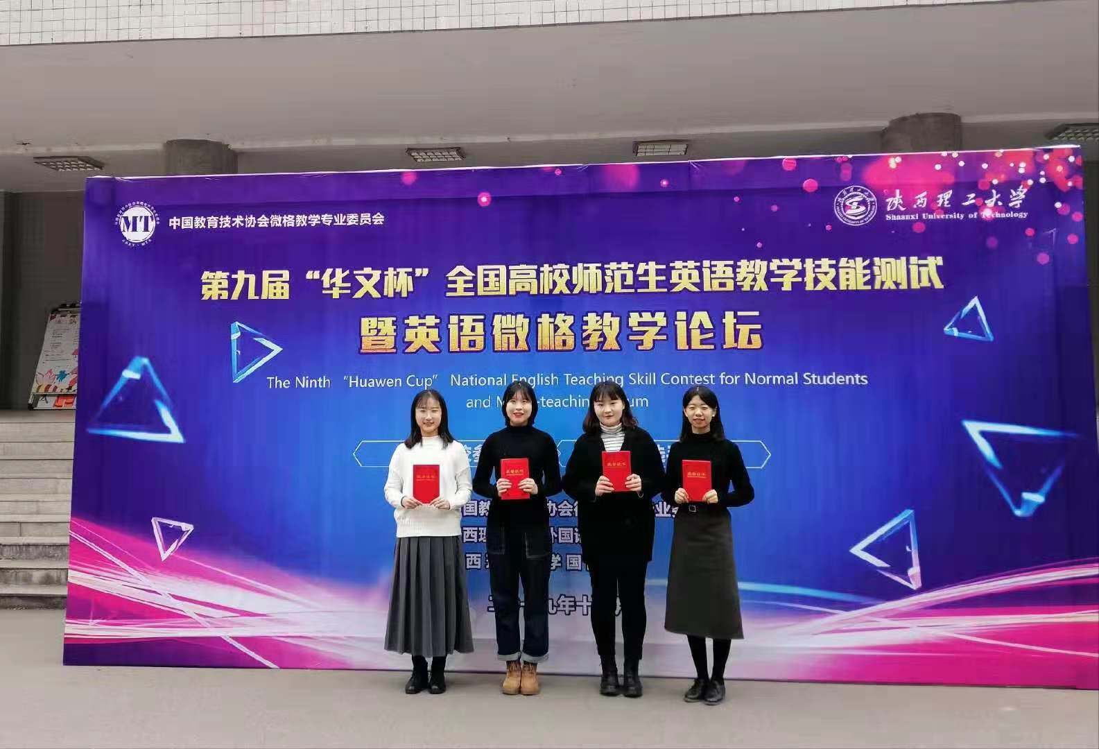 2019年“华文杯”师范生教学技能大赛12月6日-9日在陕西理工大学举行。经过激烈角逐,公司英国be365官网员工王冠华教学技能一等奖,石宁、王倩、潘高冉获二等奖;该四位同学还同时获得教学设计二等奖。