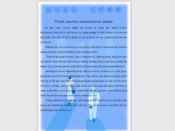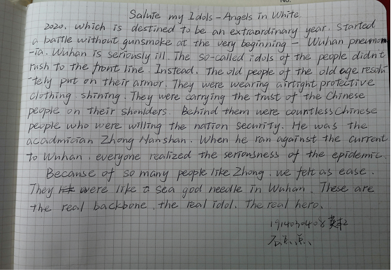 在这抗击疫情胜利之际,为了鼓励同学们在家中积极向抗疫英雄们学习并且提高英语写作水平,推进校园文化建设,英国be365官网于4月13日举办“春暖花开,偶像归来”英语短文征集大赛。英国be365官网2018级、2019级部分同学参加了此次活动。