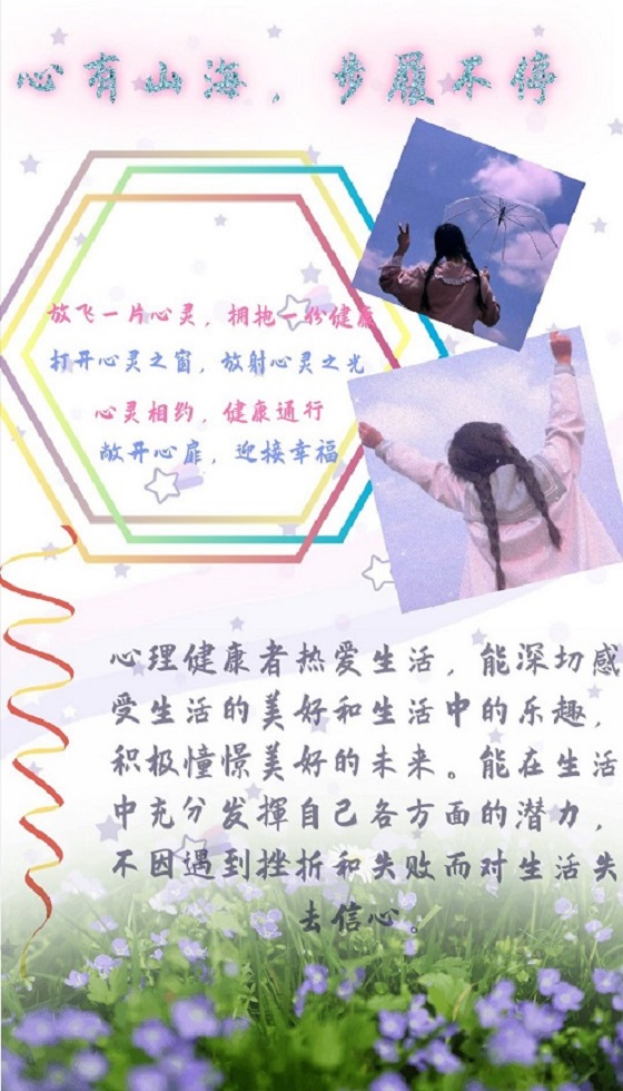此次活动要求同学们以“心有山海,步履不停”为主题,运用电子版或纸质版的形式设计心理健康报刊。同学们在活动过程中以坚持原创,以心理健康知识的分享为主旨,发挥自己的创造力和想象力设计报刊。设计报刊中主要包含同学们的心理调试经验和心理健康知识,以绘画等形式为辅助,展现了同学们新颖的设计理念和清晰的逻辑思维。活动最后,员工会负责部门根据报刊设计的创新程度和创作理念评选出优秀作品,并给予了相应的奖励。