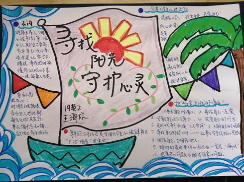 本次心理健康知识手抄报制作活动以“寻找阳光,守护心灵”为主题,通过搜集与心理健康相关的知识,结合自身实践经验,将其融入到手抄报中,从而引导员工深入了解心理健康知识,关注心灵,热爱生活。