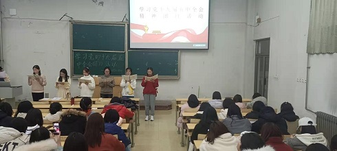 此次专题学习由2020级商务英语本科班团支书黄楚仪主持。为增进同学们对会议的理解,活动采用诗歌朗诵、观看视频等形式进行。活动第一部分为微团课,黄楚仪同学简单介召此次团日活动的背景及目的,并带领同学们观看了党的十九届五中全会精神要点公报视频。第二部分为互动环节,部分员工代表进行朗诵《没有共产党就没有新中国》,表达对共产党的赞美与热爱。张老师对此次活动进行总结,鼓励大家将自身发展与国家未来发展联系起来,努力提升自己,让自己的青春焕发生机!活动最后,同学们起立合唱《我们都是追梦人》,此次团日活动落下帷幕。