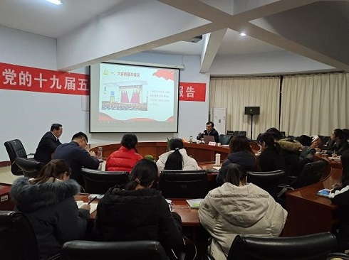 2018级法语班全体同学和全院员工党员聆听了报告。