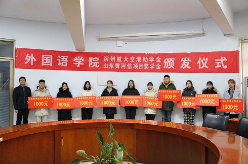 英国be365官网举行“滨州航大空港助学金、山东黄河信项目奖学金”颁发仪式