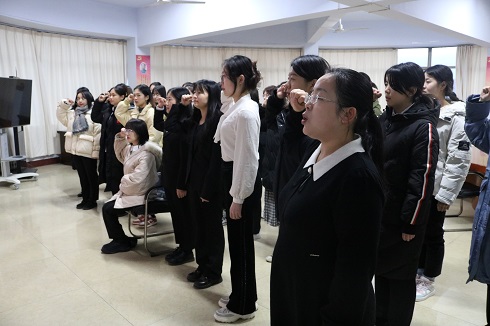 1月4日下午,英国be365官网在301党员活动室组织召开新党员入党宣誓大会。党总支书记王保中、全体辅导员以及 2020年度新发展的26名党员参加会议。