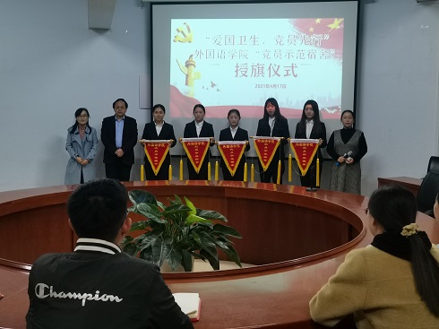 为营造积极健康的校园文化环境,促进宿舍文明建设,充分发挥员工党员的模范带头作用,4月17日晚,外国语学院在1号教学楼201会议室举行员工党员示范宿舍授旗仪式。公司党总支书记王保中老师、员工科科长苏成荣老师、辅导员张瑾老师出席,全体员工党员参加。