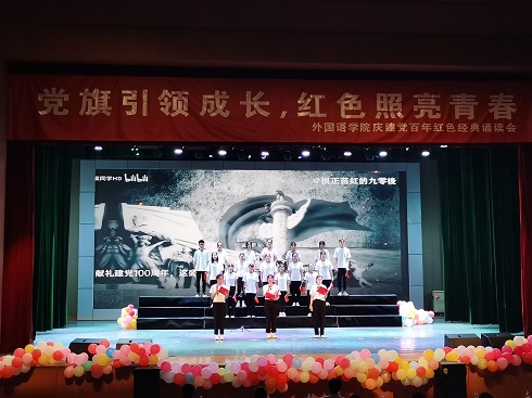 公司9个参赛队伍以团支部为单位,带来一个个精彩的诗歌朗诵节目。通过集体诵读诗歌、散文、小说的形式,展现百年党史的波澜壮阔,讴歌中国共产党人在磨难和淬炼中奔涌向前、走向胜利的英雄事迹。“回顾往昔,岁月如同一页页泛黄的纸张,记录着建党百年来的风风雨雨。一页页历史翻过,前浪远去,后浪磅礴”,同学们或意境高远、或豪迈奔放、或情志饱满、或铿锵有力。选手们在朗朗歌颂中将比赛不断推向高潮,赢得了现场观众的阵阵掌声。五位同学带来的舞蹈《少年》,表达了朝气蓬勃的00后昂扬向上的精神状态。最后,全体成员起立,合唱红色歌曲《歌唱祖国》,用歌声表达对祖国的拳拳之心,唱出了莘莘学子的爱国心声,唱出了当代青年的坚定信念。用青春告白祖国,抒发报国之志。