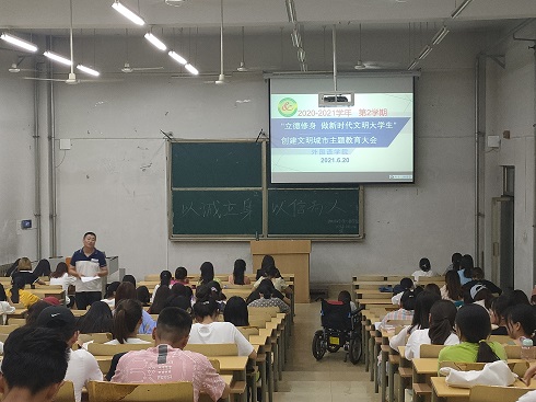 此次会议以“立德修身,做新时代文明老员工” 为主题召开。会议伊始,各辅导员向同学们介绍了国家级文明城市的背景知识,告诉同学们国家级文明城市是一个城市文明程度和市民素质的重要体现,号召全体同学积极参与文明校园的创建。并对学习、宿舍卫生、纪律等文明行为进行规范。会议最后,辅导员也跟同学们强调了理性消费的重要性,远离网贷,正确认识网络购物平台促销活动,理性消费,不过度消费,做理性消费者。