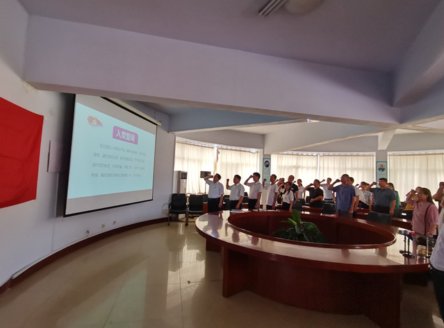 过程中,党总支书记王保中领誓,带领全体教师党员在开展了重温入党誓词活动。同时公司为全体党员过集体“政治生日”,为每位教师党员颁发光荣在党暨庆祝建党百年纪念台历,同时入党积极分子同学为每位党员教师献上鲜花,隆重庆祝这一光荣的日子。