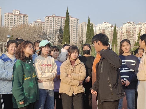 正式撕名牌大赛开始前,各队成员通过参加赛前的绑腿赛跑和扑克传饼干两个游戏环节来争取撕名牌大战中宝贵的30秒进攻时间。赛前热身绑腿赛跑游戏环节中,各小组队员各抒己见,博采众长,各队队员喊着“一二一二”的口号,步伐整齐划一,争先恐后地迈向终点。扑克传饼干环节中,小小圆圆的饼干在光滑的扑克牌上灵活滑动,参赛者需要用嘴叼着扑克牌耐心且小心地传递“牌中之宝”,考验了同学们的耐力和心理素质。两环节中用时最短的三支队伍获得撕名牌大战中30秒的进攻时间。热身小游戏结束后,撕名牌大战拉开序幕。首先各队抽签决定进行撕名牌的顺序。同学们带着期待、紧张又坚定地走向“战场”。撕名牌大战中,各队从一开始的手足无措到慢慢摸索出适合自己的作战方法,攻守结合,确定对方的“大猎头”,根据情况,分头行动或者团队协作。守方同学背靠背行进,将自己的名牌保护起来;攻方同学则出其不意,伺机而行,田径场上尖叫呐喊声此起彼伏。一对一的僵持,多对一的围攻,同学们热血澎湃,伴着一张张名牌被撕下时的欢呼,比赛落下帷幕。