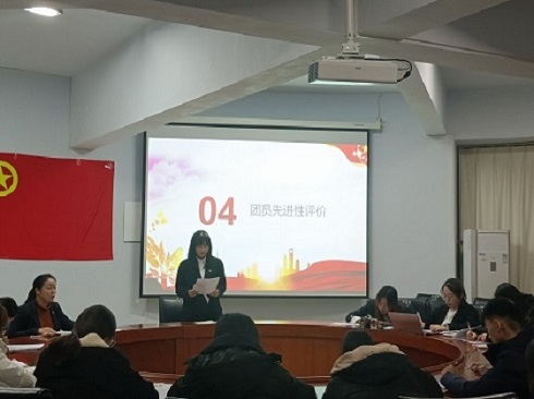 会议开始前,各团支部认真学习了《团章》、《中国共产主义青年团团员教育工作管理条例(试行)》以及《新时代共青团员先进性评价指导大纲(试行)》等文件,并为此次活动开展打好理论基础。 活动伊始,辅导员张瑾强调此次会议的重要性,并要求全体团员认真学习。随后,团支部书记刘姝妍宣布会议开始。会议第一项,全体团员起立唱团歌。会议第二项,由团支部书记刘姝妍汇报了一年以来团支部所做的工作,介绍了本班团支部在学党史、“七一”重要讲话精神、学习习近平总书记党的十九届六中全会等方面开展情况及学习成果。会议第三项,团支部委员、团员依次发言进行自我评议和相互评议。评议立足团支部的建设与自我提升,评议内容主要包括学习习近平总书记重要讲话的心得与体会和自己一年来在学习等方面的取得的成就以及不足之处,并总结经验教训以及改进方法。会议第四项为团员先进性评价。会议第五项,辅导员张瑾老师就此次会议进行点评并发表讲话。她强调,各团支部成员一定高度重视此次会议,认真学习习近平重要讲话精神,发挥共青团员的模范带头作用,在今后不忘初心,努力学习。会议第六项,全体团员起立,重温入团誓词。