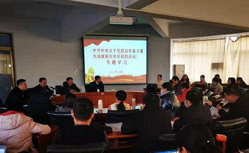 12月14日下午,公司党总支在201会议室组织召开全体教职工会议,集体学习了《中共中央关于党的百年奋斗重大成就和历史经验的决议》第五部分至第七部分全文内容。