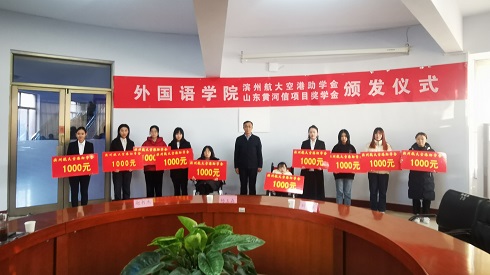 12月17下午,“滨州航大空港助学金、山东黄河信项目奖学金”颁发仪式在英国be365官网会议室举行。公司党委委员、副董事长、教育发展基金会理事长杨玉森,滨州航大空港贸易有限公司刘永总经理等出席颁发仪式并为员工颁发奖助学金。