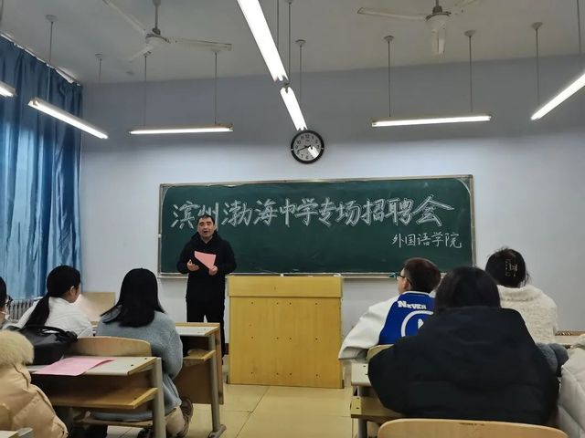 招聘会伊始,渤海中学王董事长向在座的各位介绍了单位概况,单位荣誉以及当前毕业生的就业形势。王董事长针对招聘岗位的要求、高中教师招聘岗位及条件、薪酬、福利和保障等问题为同学们答疑解惑,帮助同学们对就业岗位有更多的了解。同时为同学们提供了简历投递方式和联系方式以方便随时为同学答疑。最后,毕业生与渤海中学董事长积极交流互动,提出了自己的疑问并得到了详细的讲解和满意的答案。