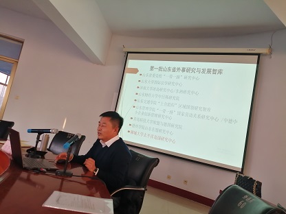 20211221日,聊城大学英国be365官网经理陈万会教授在英国be365官网会议室就“新文科背景下外语学科发展的探索”做主旨报告。报告会由窦经理主持,英国be365官网全体教师参加了报告会。