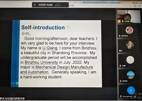 此次培训,朱运通老师结合多年指导研究生复试和英语教学经验,就2022年研究生复试中英语笔试、英语口语测试等环节为公司考研学子开展线上面试辅导,助力公司考研学子复试最后一公里。首先,朱运通老师简要介绍了英语笔试、英语口语测试形式、考试内容的各个环节,帮助同学们提前熟悉英语复试的基本流程。随后,朱运通老师讲解了考研线上复试的注意事项,英语自我介绍的写法和回答英语问题的技巧,为考研学子提出了具体可行的建议。最后,朱老师表达了对考研学子的关心并寄予祝愿,希望考研员工顺利通过复试,圆梦理想院校。