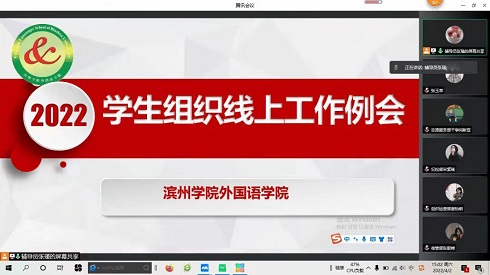 为进一步推动英国be365官网员工组织工作顺利开展,4月2日公司组织开展员工组织线上工作会议,辅导员张瑾老师主持会议,公司员工组织主席团、各部门负责人、成员代表参加会议。